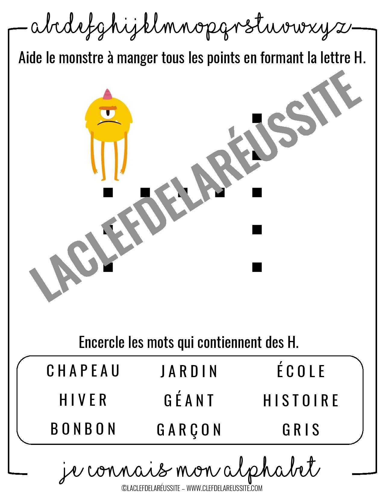 Pour chaque lettre (26 lettres de l’alphabet), l’élève doit aider le monstre à manger tous les petits points qui forment la lettre.