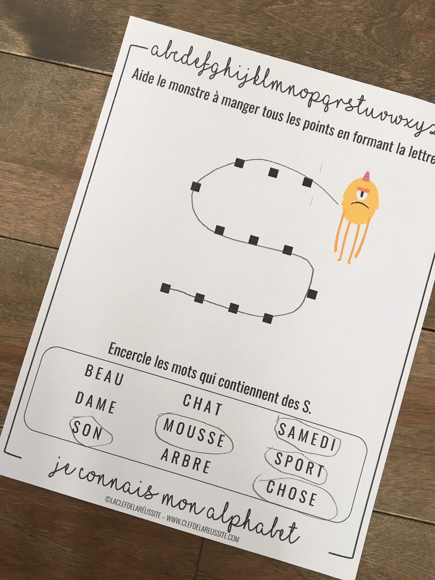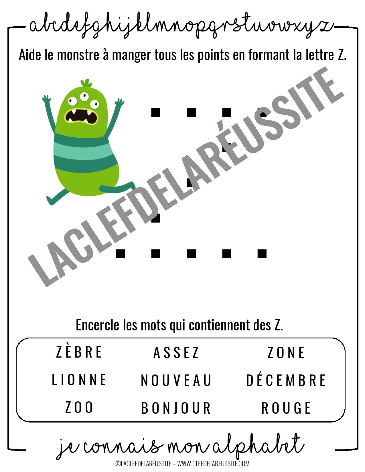 Le document comprend les 26 lettres de l’alphabet.